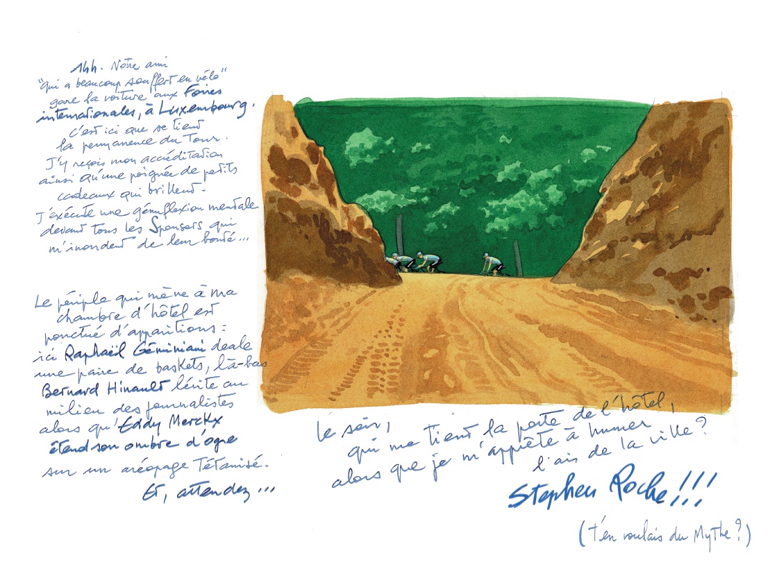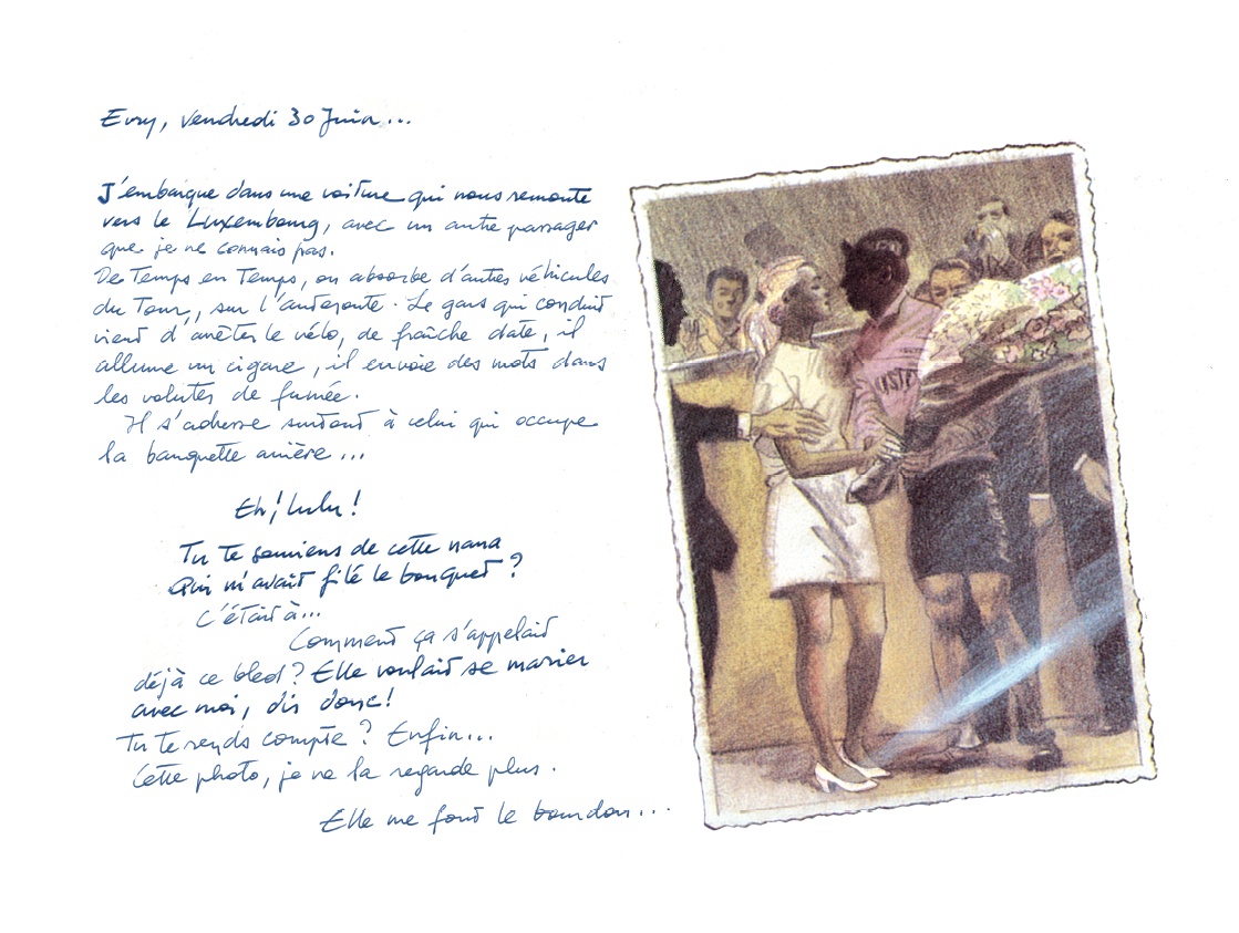 J'étais ce môme qui avait suivi jadis les exploits du Tour au transistor et qui voyait enfin les figurines de plomb rouler à 60, tomber dans des ravins et manger comme des ogres, le soir, en chantant victoire dans des hôtels hallucinés.